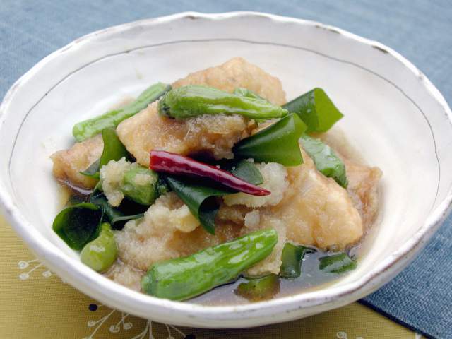 揚げかじきとしし唐のおろし煮レシピ 素材力だし