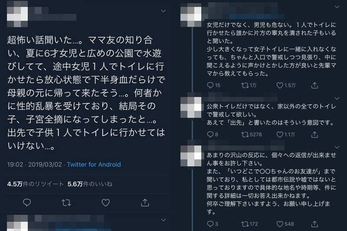 女児が公園のトイレで暴行を受け子宮全摘 ネットで拡散 過去にも同様の噂が