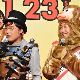 映画 手裏剣戦隊ニンニンジャーvsトッキュウジャー the movie 忍者 イン ワンダーランド の完成披露イベントに登場した 南海キャンディーズ の山里亮太 右 としずちゃん スポニチ Sponichi Annex 芸能