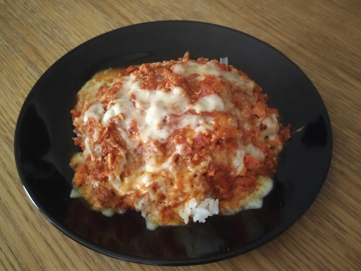 ご飯にレトルトのミートソースとクリームチーズとスライスチーズ乗せ 写真共有サイト フォト蔵