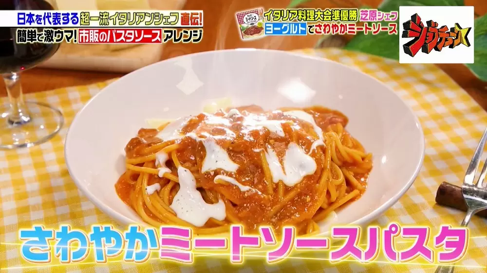 ジョブチューン ヨーグルトで爽やかミートソースのアレンジパスタの作り方 一流シェフ直伝 市販のソースで激ウマアレンジ Destiny Life