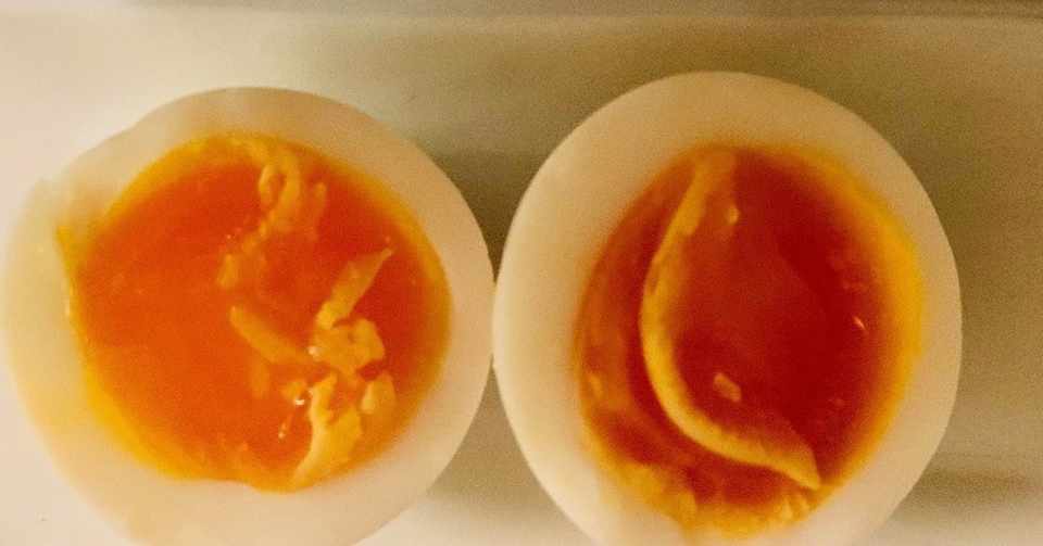 ということで2日漬けたバージョンです。 まあ、見た目に大差はありませんね。そして前日の反省を踏まえ今回は丸ごとパクリ。感想は… 「ゆで卵のぬか漬けは、やっぱり1日目が美味しいな」 固ゆで卵の時と同様、ぬかの味が強すぎるように感じました。.