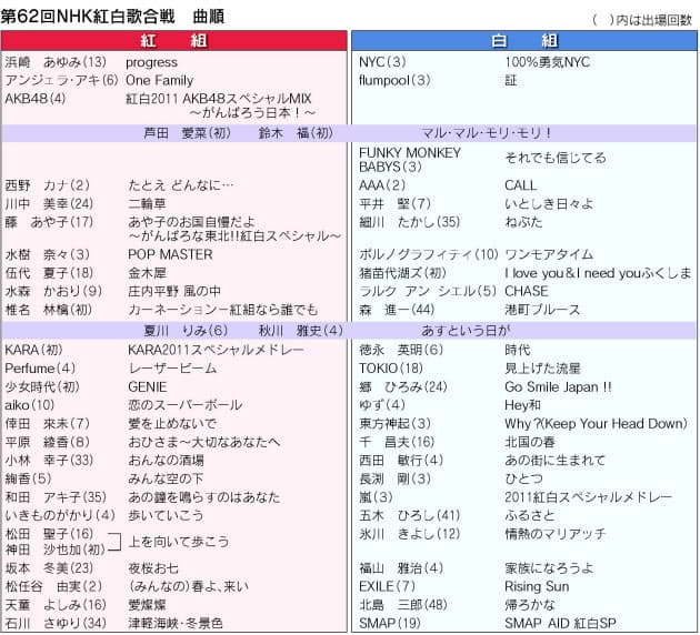 紅白歌合戦 大トリは2年連続smap 曲順発表 日本経済新聞