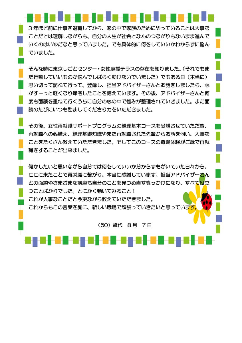 利用者からのメッセージ 東京しごとセンター 女性しごと応援テラス