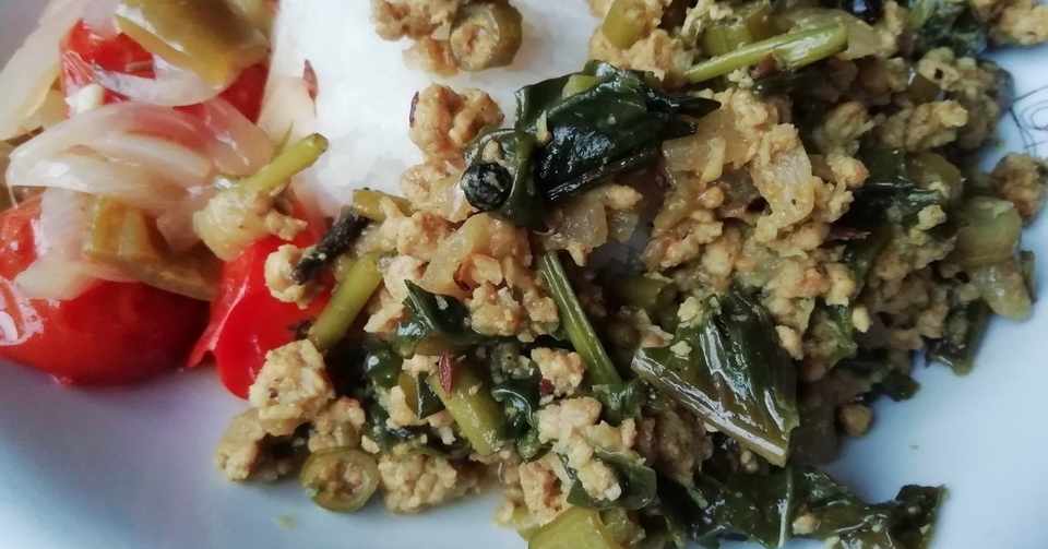 S B 赤缶 カレー粉 で空心菜入りキーマ と空心菜の炒め物 しず香 Note