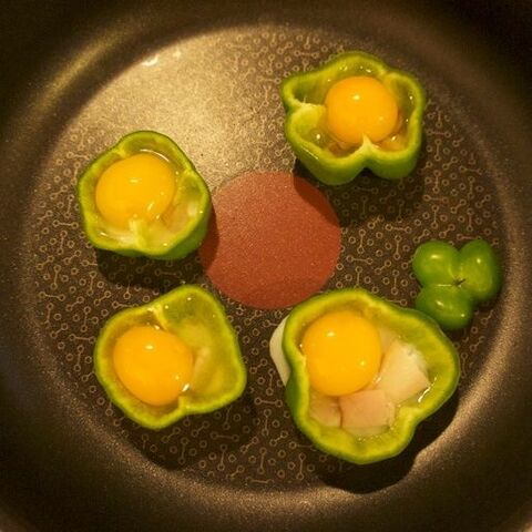 ピーマンとベーコンの巣ごもり卵 レシピ 作り方 By はーとねこ クックパッド